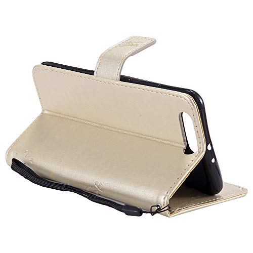 COTDINFOR Huawei P10 Plus Case Premium PU Custodia in Pelle Cash Pocket Flip Custodia a Portafoglio Chiusa con Slot per Carta di Credito per Huawei P10 Plus Gold Wishing Tree with Diamond KT.