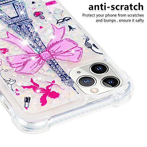 COTDINFOR pour iPhone 11 PRO Max Custodia Silicone Trasparente Design Ultrasottile Bling Glitter Flowing Liquido Quicksand Cute TPU Bumper Custodia per iPhone 11 PRO Max(6.5 inch) Tower YB.
