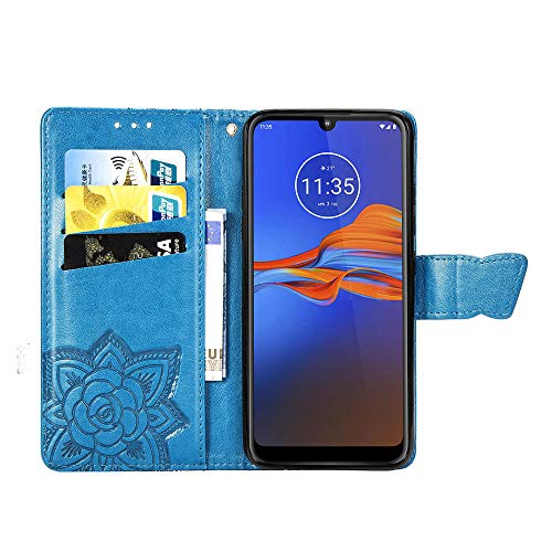 COTDINFOR per Motorola Moto E6 Plus Custodia Slim Chiusura Magnetica Retro PU Folio Filp Portafoglio a Fogli Mobili con Slot per Schede Custodia per Moto E6 Plus Flower Butterfly Blue SD