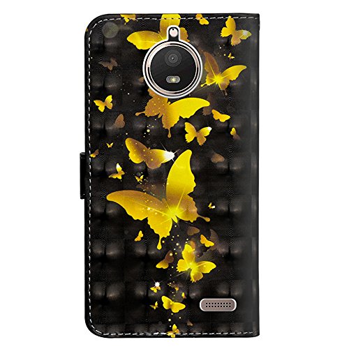COTDINFOR pour Motorola Moto E4 Custodia Cover TPU 3D Effect Painted PU in Pelle con Wallet Card Holder Flip Custodia per Motorola Moto E4 (EU Version) Golden Butterflies YX.
