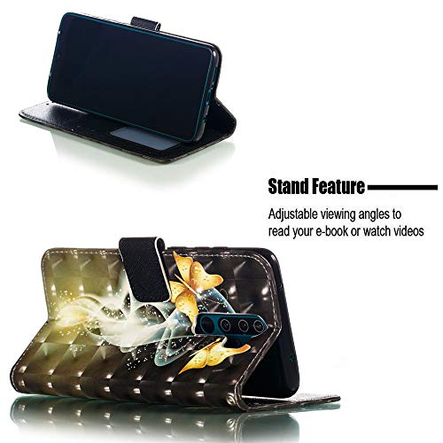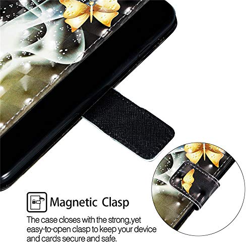COTDINFOR pour Redmi Note 8 PRO Custodia Cover TPU 3D Effect Painted PU in Pelle con Wallet Card Holder Magnetico Ultrasottile Antiurto Flip Custodia per Redmi Note 8 PRO Two Golden Butterflies XLL.
