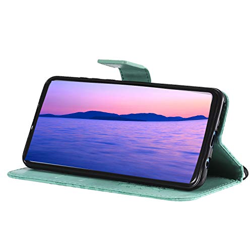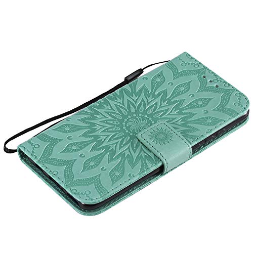 COTDINFOR Samsung A40 Custodia Premium PU Leather Mandala Fiore Elegante Wallet Custodia a Rilievo Custodia Folio Flip Cover Case con Kickstand Card per Galaxy A40 Green Sunflower KT.