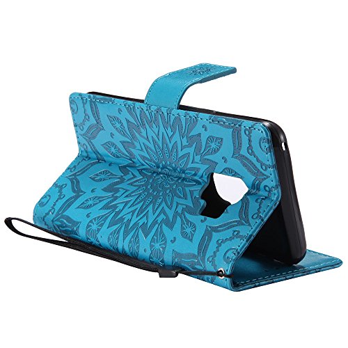 COTDINFOR Samsung S9 Custodia Premium PU Leather Mandala Fiore Elegante Wallet Custodia a Rilievo Custodia Folio Flip Cover Case con Kickstand Card per Galaxy S9 Blue Sunflower KT.