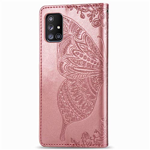 COTDINFORCA Custodia per Galaxy A51 5G, Samsung A51 5G Cover Crystal Bling PU Leather Card Slot Magnetic Lock Case per Samsung Galaxy A51 5G Protettiva Case Diamond Butterfly Rose Gold SD