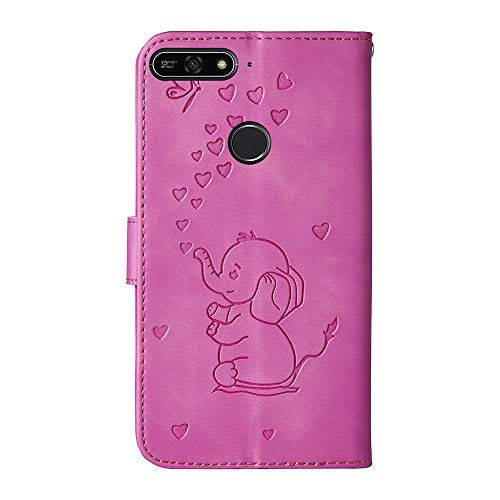 COTDINFORCA Huawei Y6 2018 Custodia Flip, Forma di Cuore Art Elephant Protective Case Portafoglio in Pelle PU Magnetica Stand Function Cover per Huawei Honor 7A Love Elephant Rose.