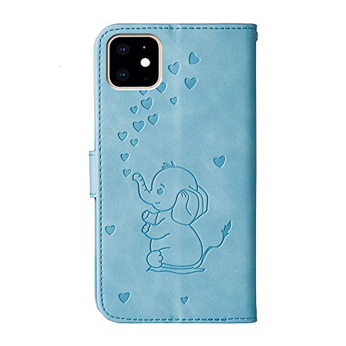 COTDINFORCA iPhone 11 Custodia Flip, Forma di Cuore Art Elephant Protective Case Portafoglio in Pelle PU Magnetica Stand Function Cover per iPhone 11 Love Elephant Blue.
