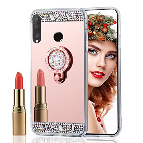 COTDINFORCA Mirror Makeup Case for Samsung Galaxy A20S Custodia TPU Suitable for Girls Slim Bling Crystal Diamond Glitter Phone Cover per Samsung Galaxy A20S Ring Mirror Rose Gold.