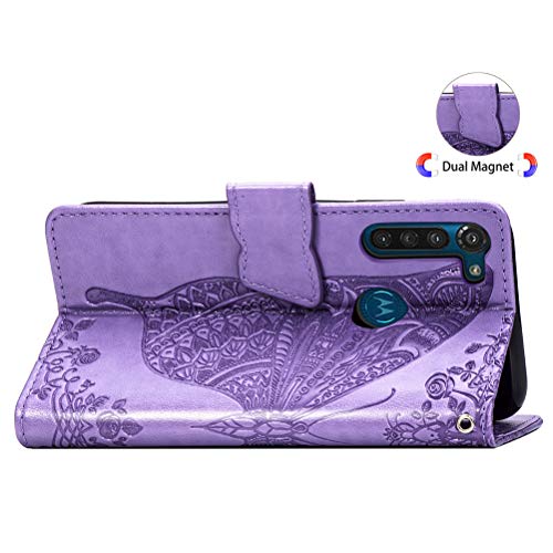 COTDINFORCA Motorola Moto G8 Power Custodia Disegno in Rilievo a Farfalla Titolare della Carta in Pelle Antiurto Chiusura Magnetica Cover per Moto G8 Power Flower Butterfly Lavendel SD
