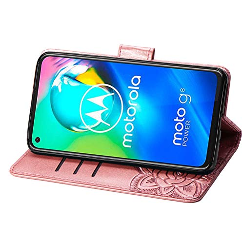 COTDINFORCA Motorola Moto G8 Power Custodia Disegno in Rilievo a Farfalla Titolare della Carta in Pelle Antiurto Chiusura Magnetica Cover per Moto G8 Power Flower Butterfly Rose Gold SD