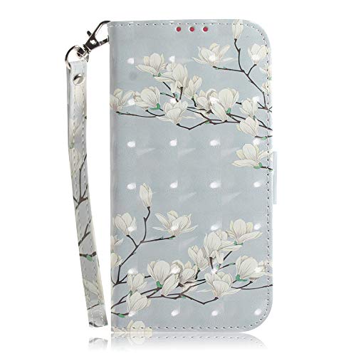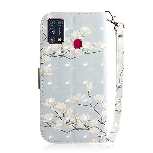 COTDINFORCA Case for Samsung Galaxy M31 Custodia, Cool Animal 3D Effect Painted PU Leather Flip Chiusura Magnetica Titolare della Carta Stand Wallet Cover for Galaxy M31 White Flowers TX.