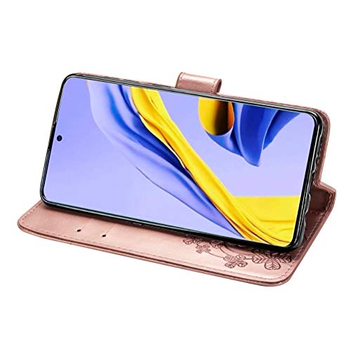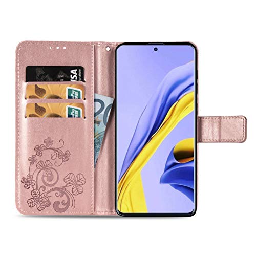 COTDINFORCA Samsung Galaxy A71 5G Custodia per Donna, Retro Disegno in Rilievo a Quadrifoglio Titolare della Carta in Pelle PU Antiurto Chiusura Magnetica Cover per Galaxy A71 5G Clover Rose Gold SD