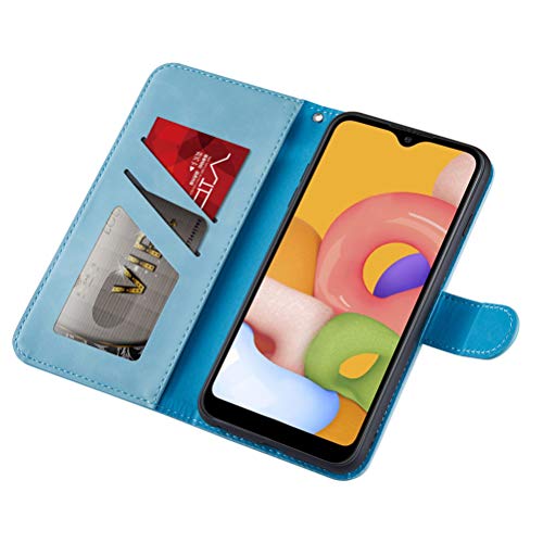 COTDINFORCA Samsung Galaxy A01 Custodia Flip, Forma di Cuore Art Elephant Protective Case Portafoglio in Pelle PU Magnetica Stand Function Cover per Samsung Galaxy A01 Love Elephant Blue.
