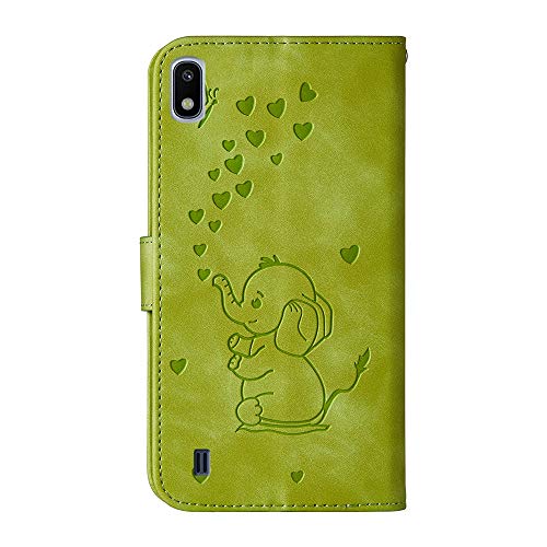 COTDINFORCA Samsung Galaxy A10 Custodia Flip, Forma di Cuore Art Elephant Protective Case Portafoglio in Pelle PU Magnetica Stand Function Cover per Samsung Galaxy A10 Love Elephant Green.