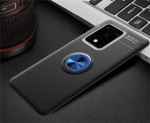COTDINFORCA for Samsung Galaxy S20 Plus(6.7") Custodia, Soft Silicone TPU Shell 360 Degree Rotating Metal Ring Magnetic Lock Car Mount Light Duty Cover per Samsung Galaxy S20 Plus Black Blue-SSD.