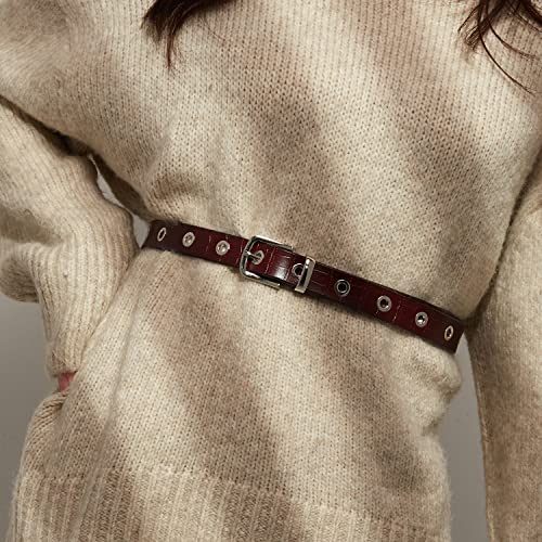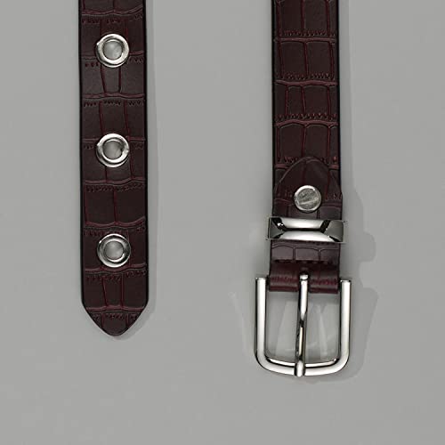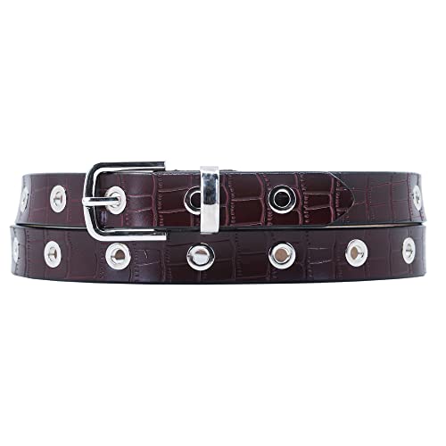 COTIDI Cintura donna con occhielli rivetti in pelle stampata in coccodrillo 2 cm di larghezza, marrone, 120 cm