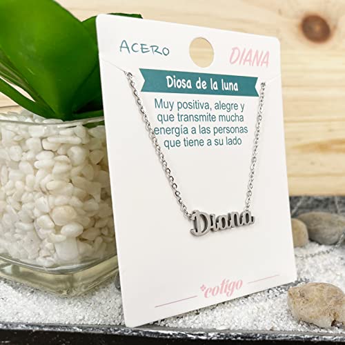 Cotigo Collana con Nome in Acciaio Inossidabile - Ciondolo con Nome Personalizzato Collana in Argento o Dorate - Regali Personalizzati per Le Donne San Valentino amore (Diana-Argentato)