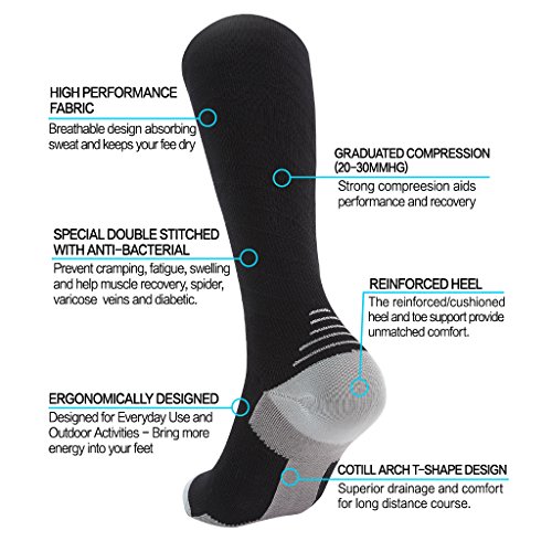 Cotill Calze a Compressione per Donne e Uomini - Migliore per Running, Athletic Sport, Crossfit, Flight Viaggio - Tuta Infermieri, maternità Gravidanza, periostite - sotto al Ginocchio