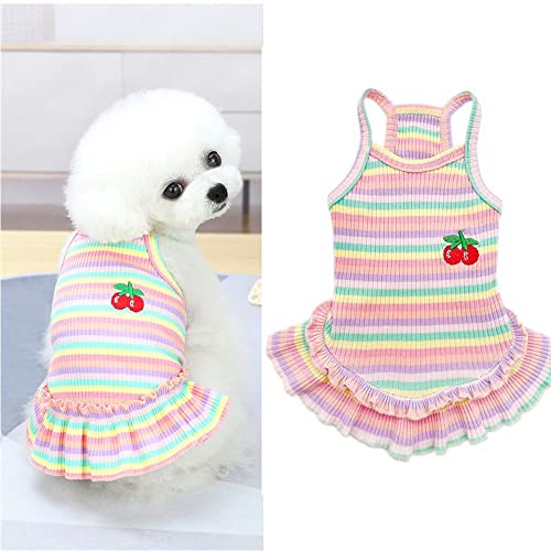 2PCS Cotone Ciliegia Cucciolo Camicie Gatto Gilet Arcobaleno Cane Abiti A Strisce Pet Vestiti (M)