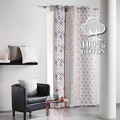 Cotone da interno, Remix, tenda a occhielli, Cotone, Rose/Menthe, 140 x 240 cm
