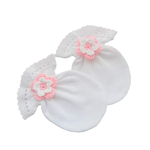 100% cotone jersey neonato antigraffio guanti di festa bianco cotone Lace uncinetto fiore fatto a mano, 0-3 mesi ...