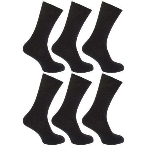 6 paia di Mens 100% Cotone LARGA Largo Top A coste Calze Non Elastiche by ALER / numeri UK 6-11 e 11-13 - cotone, Nero, 100% cotone, Donna, 6-11
