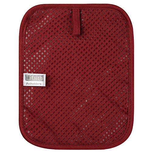 100% cotone con silicone da cucina tutti i giorni, supporto base per pentole resistente al calore, guanti da forno con tasca per cucinare e cuocere Set di 2 rosso