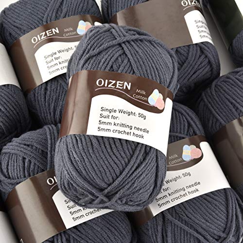 Cotone per Uncinetto, Gomitoli di Lana 500g (10x50g Filato Lana Intreccio) Lana Cotone Gomitoli per Sciarpe, Maglieria, Cardigan e Coperte (grigio)