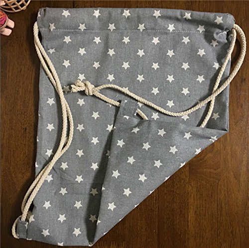 Yile cotone lino viaggio zaino Student Book bag bianco stella grigio base B14