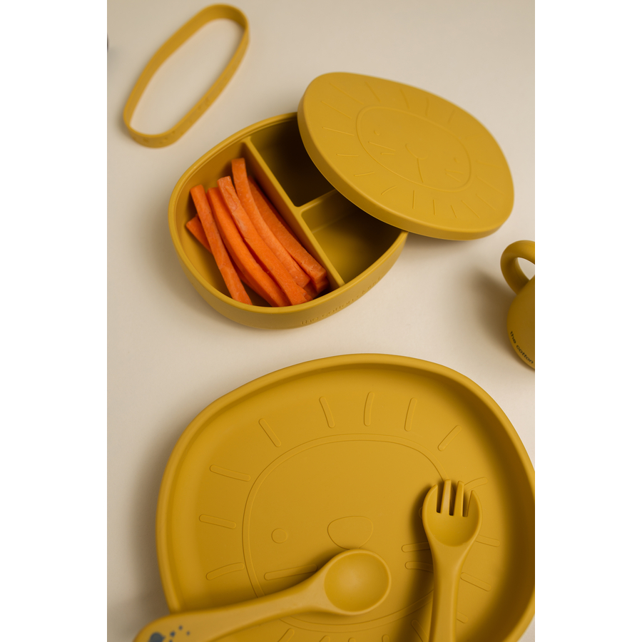 Il nostro leone preferito Alfie questa volta si trasforma in una scatola per il pranzo! Alfie è morbido, robusto e irresistibile! Le sue dimensioni sono ideali per trasportare qualsiasi snack nello zaino con facilità. Il The Cotton Cloud La scatola del pranzo è divisa in scompartimenti in modo che il cibo non si mescoli. È anche super facile da pulire grazie al silicone lavabile in lavastoviglie. Suggerimento: il coperchio può essere usato come un piccolo piatto! Dettagli del prodotto Lavabile in lavastoviglie Silicone alimentare non tossico Senza BPA Orgogliosamente progettato in Germania