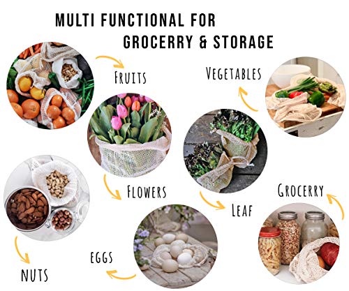 VAI BAGAGLI ORGANICI PER LA PRODUZIONE DI SUCCESSO: molte persone cercano di raggiungere uno stile di vita a rifiuti più vicino, le nostre borse di produzione Mesh ti permettono di fare il tuo negozio settimanale senza la necessità di plastica monouso in grado di soddisfare la vita con cotone biologico. Pratici sacchetti di prodotti riutilizzabili da utilizzare per la selezione e il trasporto di frutta e verdura fresca. Le nostre borse per prodotti riutilizzabili sono un'alternativa facile