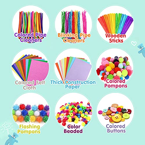 COTTONIX Lavoretti Creativi per Bambini, Set Bricolage Materiale per Fai da Te Bambini, Lavoretti Bambini Kit Includere Pom poms, Scovolini, Bastoncino del Ghiacciolo, Piuma, Occhi Finti