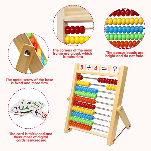 【Costruzione Premium】 Il telaio dell'abaco è realizzato in legno naturale di alta qualità, liscio al tatto, robusto e resistente. Le perline sono infilate da 10 file di aste in acciaio inossidabile, rispetto alle aste di legno, le perline sono facili da far scorrere avanti e indietro sulle aste di metallo, che è più adatto ai bambini.