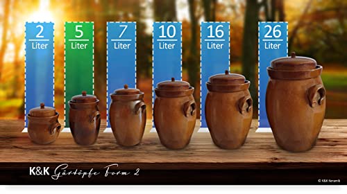 Vaso da Cottura Originale K&K, da 5,0 Litri, Forma II, comprende Pietra per appesantire e Coperchio.