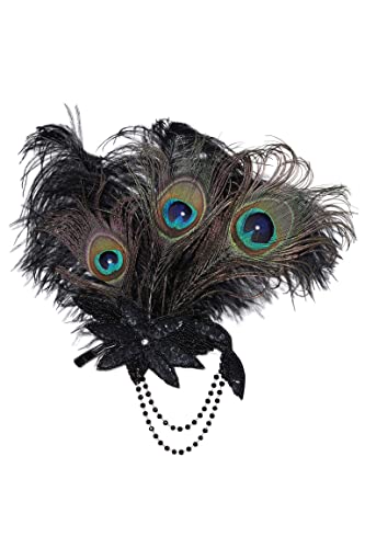 Coucoland 1920s - Fermaglio per capelli con piume di pavone, stile anni '20, elegante fermaglio per capelli, in stile Gatsby, charleston, 1920, Stil 6 - Pfau Schwarz, Taglia unica