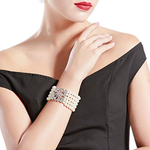 Coucoland - Braccialetto con perle di Gatsby anni '20, 5 file di perle elastiche imitazione braccialetto ruggenti accessori anni '20 e Perle finte di alta qualità., colore: bianco, cod. Ar-Bracelet007