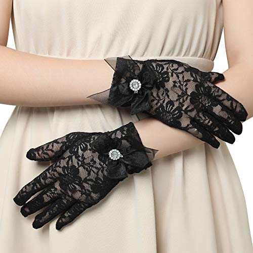 Coucoland - Guanti da donna in pizzo, per matrimonio, per feste e carnevale Fiocco nero/22 cm. Taglia unica