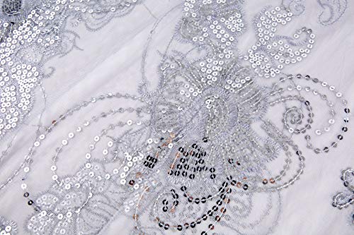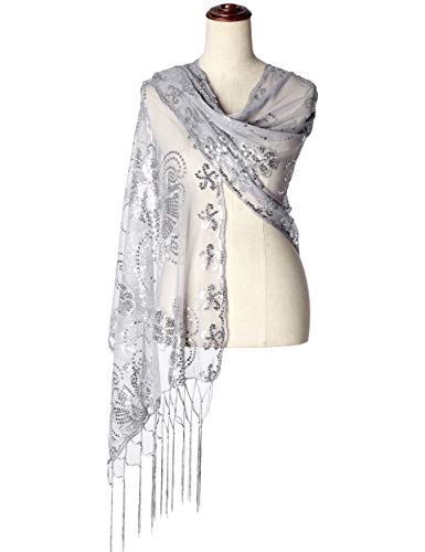 Coucoland paillettes perline Art Deco sera capo donna 1920 scialle frange floreale festa di nozze scialle sciarpa, grigio, Etichettalia unica