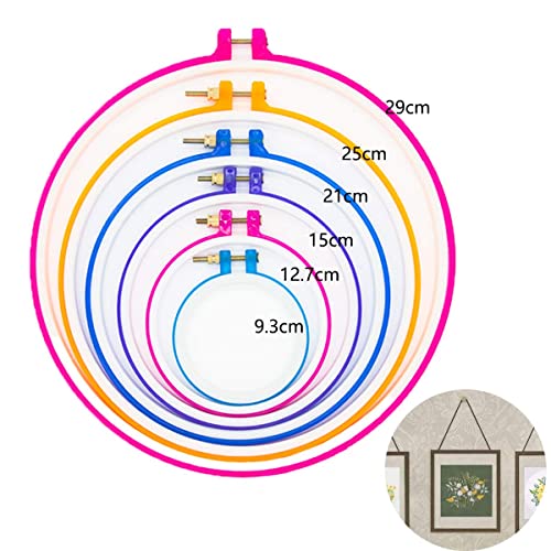 Counius 10 Pezzi Telaio Ricamo Rotondo Anelli a Punto Croce Plastica Fai da Te Telaio Ricamo Finta Venatura Legno per Art Craft Cucito Produzione a Punto Croce e Display