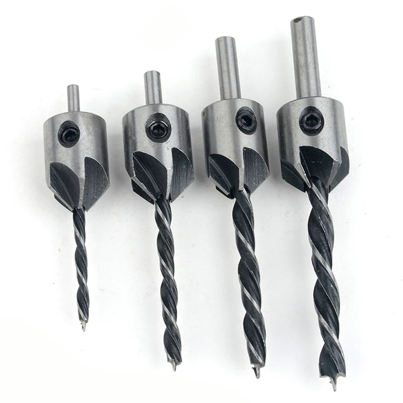4pcs HSS Countersink Wood Drill Steel Countersink Drill Set 5 Flute 3mm-6mm Adjustable Counter Sleeve Depth With Wrench
