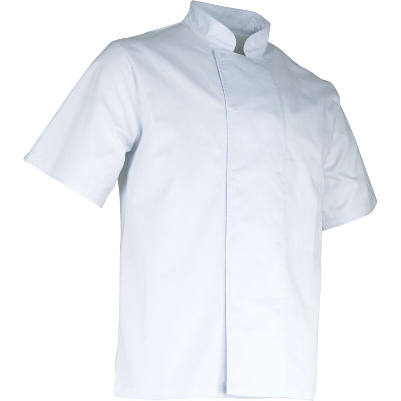 Dettagli: Tessuto robusto e morbido Colletto da ufficiale, doppia abbottonatura con bottoni a pressione nascosti Tasca portapenne sulla manica, 1 tasca interna Ricamo nero in tinta con gli elementi delle tasche Caratteristiche: 65% poliestere 35% cotone - 245gr/mq Bianco