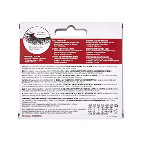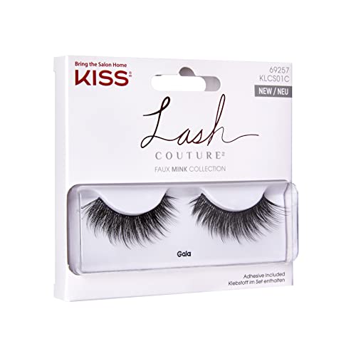 KISS Lash Couture Faux Visone Collection 1 paio di ciglia finte, Gala, Ultrafine, affusolate, sintetiche con colla per ciglia