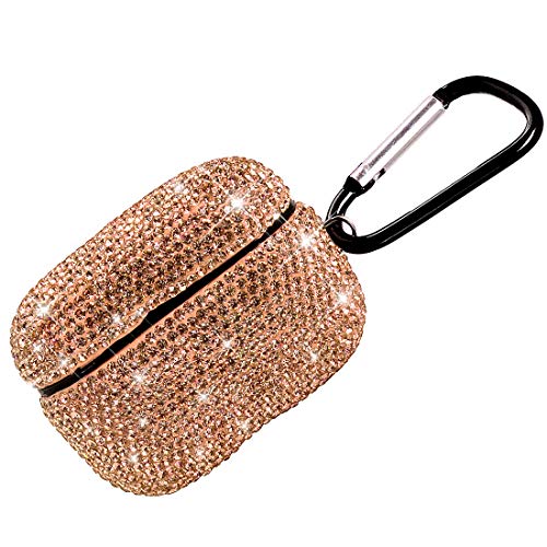 Cover AirPods Pro Custodia,con moschettone Glitter Bling Brillantini Diamond Hard PC due pezzi Custodia Case Cover antipolvere protettiva Custodia Cover per AirPods Pro 2019,Aranciagiallo chiaro