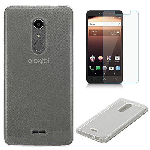 EUGO Cover Alcatel A3 XL + Pellicola Protettiva, TPU Silikon Case Custodia Shock-Absorption Bumper e Anti-Scratch Back Transparent Cover