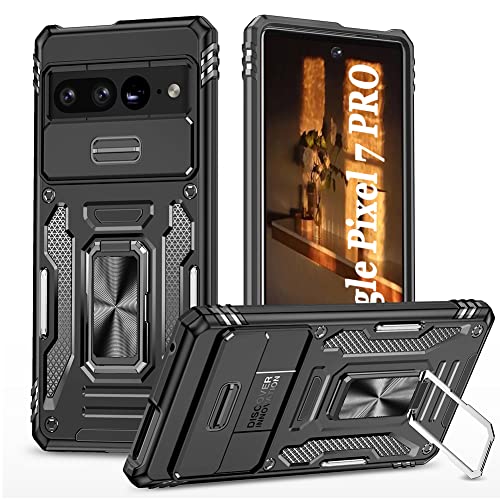 Cover con Anello per Google Pixel 7 Pro, Custodia Anello Magnetico 360° Gradi, Trasparente Cover Antiurto Militare TPU Bumper+PC Rigido Cavalletto Cover per Google Pixel 7 Pro, Nero