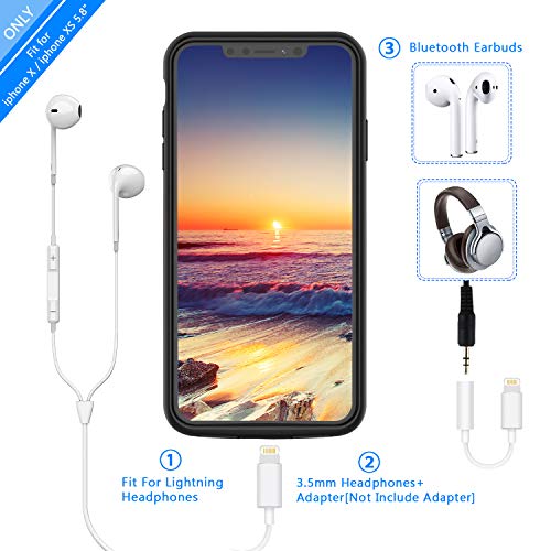 PEMOTech Housse Batterie Externe pour iPhone X/XS,100% Tout neuf de haute qualité! **S'il vous plaît Note: Le boîtier de la batterie ne peut pas fonctionner avec votre iPhone X/XS Cble casque, mais travailler avec votre iPhone X /XSBluetooth écouteurs**.
