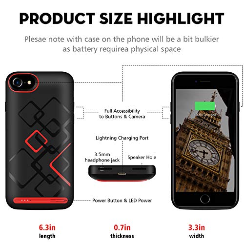 Cover Batteria iPhone 8/6/6S/7 4.7",Abree 5000mAh Custodia Ricaricabile con Batteria Esterna Caricabatterie Cover Battery Case Batteria Protettiva Power Bank Backup Charger Case - Nero (Iphone6/7/8s)