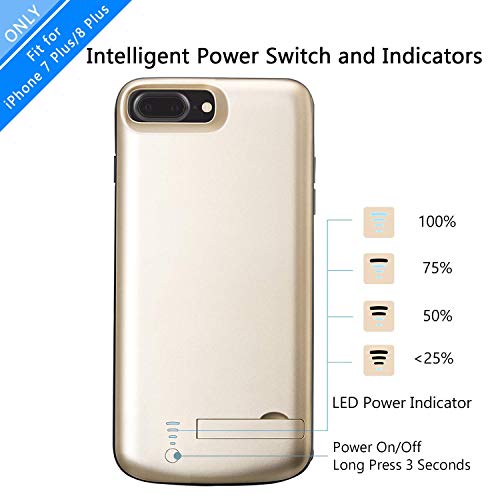 Cover Batteria per iPhone 8Plus/7Plus,PEMOTech[Compatibili Auricolari Lightning] 8000mAH Power Bank con Batteria Integrata Custodia Protettiva Charger Case Con Braccio per iPhone 8Plus/7Plus-Oro