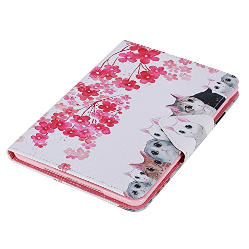 Cover iPad mini 2 Bianca, Aeeque Gatto e Fiori Rosa Modello Deisgn Portafoglio a Libro in Pelle Finta Magnetica Flip Smart Tablet iPad mini 1/ mini 2/ mini 3 (7.9 pollici) Custodia Antiurto Resistente Protettivo Caso Rigida