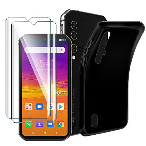 HYMY Cover per Blackview BV9900E Custodia (5.5") + 2X Pellicola Protettiva - Morbida Black Silicone Bumper Case TPU Protettivo Copertura Custodia 9H Vetro temperato