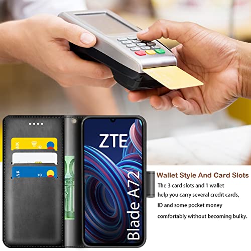 Cover Per ZTE Blade A72 4G / V40 Vita, Nero PU Pelle Portafoglio Libretto Flip Protettiva Custodia con Uno Vetro Temperato Pellicola Protettiva PerZTE Blade A72 4G 6,75"